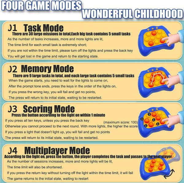 【Handheld Puzzle Game 】:There are 4 different modes of this fidget travel game. Level, Memory, Scoring, and Multiplayer modes.Keep kids entertained for hours with sound effects and flashing lights.